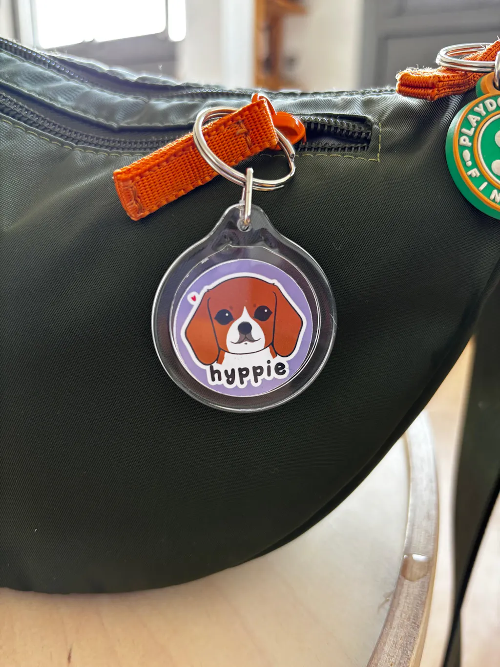 The front portrait is accompanied by a small heart in the top left corner and the name of your companion written below, making this key ring an accessory full of tenderness.