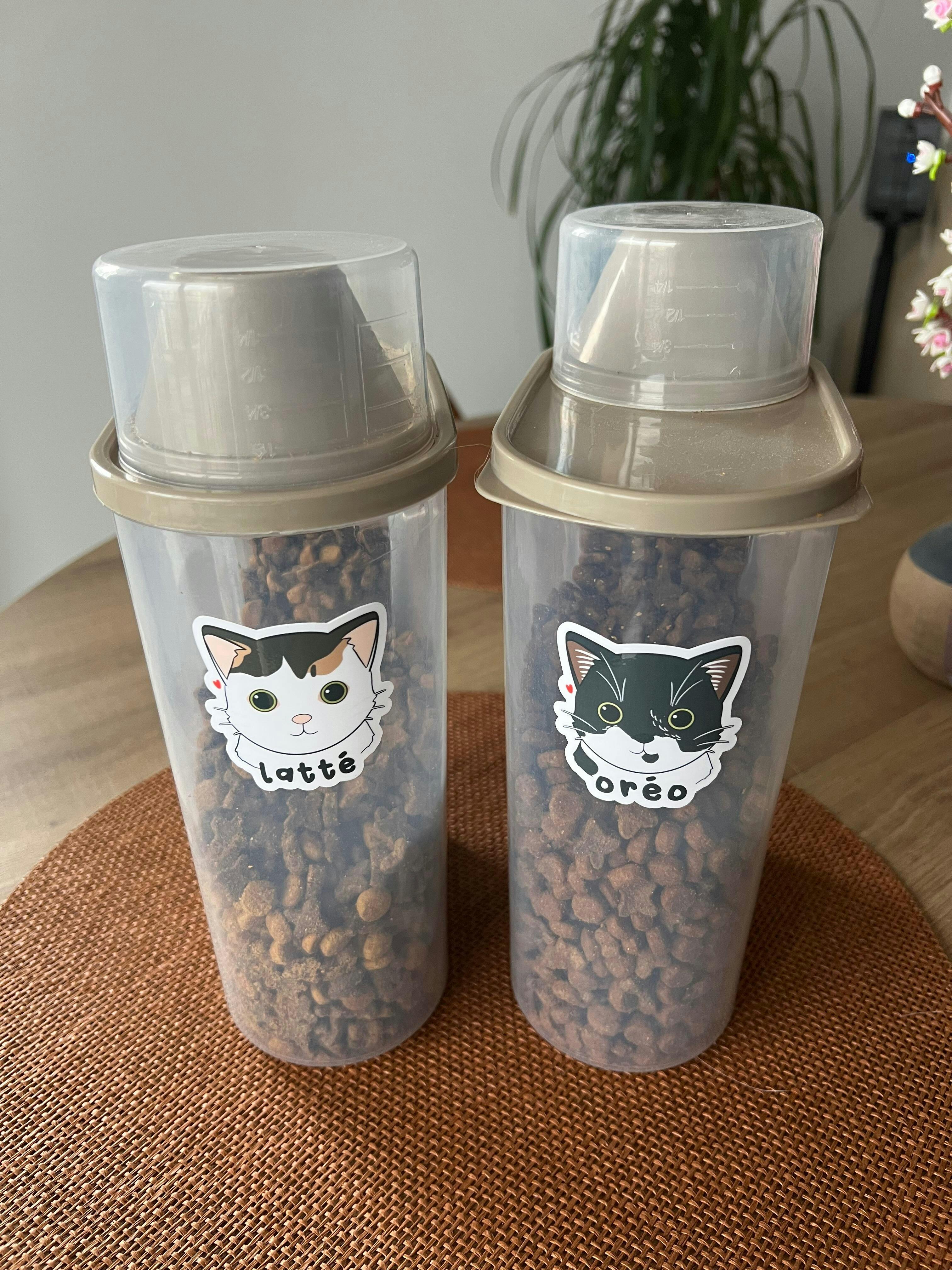 Mes chats ont des croquettes différentes, je voulais différencier leur boîte avec un sticker et l’effet est incroyable 😻